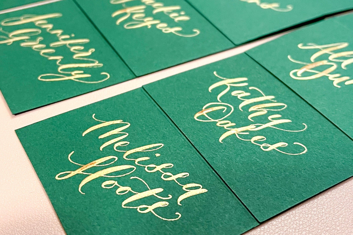 There’s something truly special about watching your name, initials, or a heartfelt message beautifully hand-calligraphed in real time on the surface of your choice. This luxurious and personalized experience creates a meaningful connection, leaving a lasting impression on guests, clients, or loved ones.